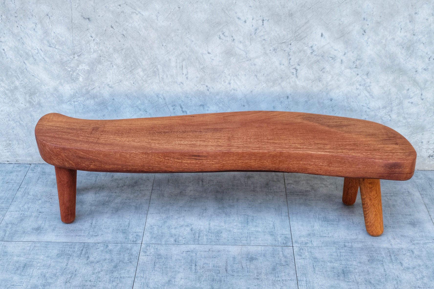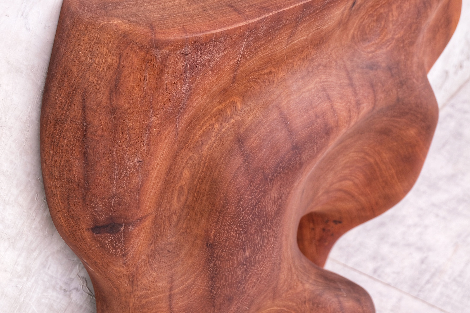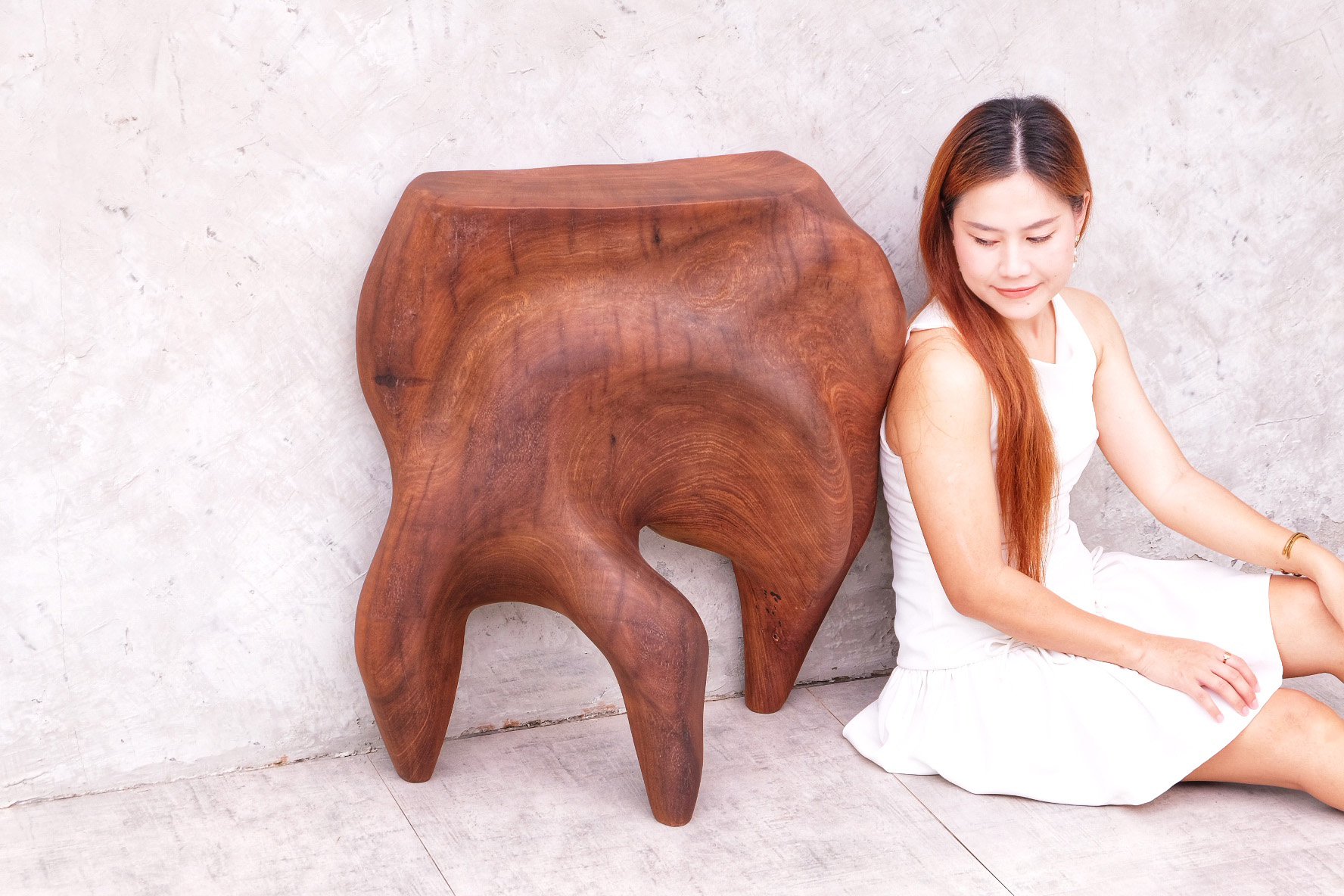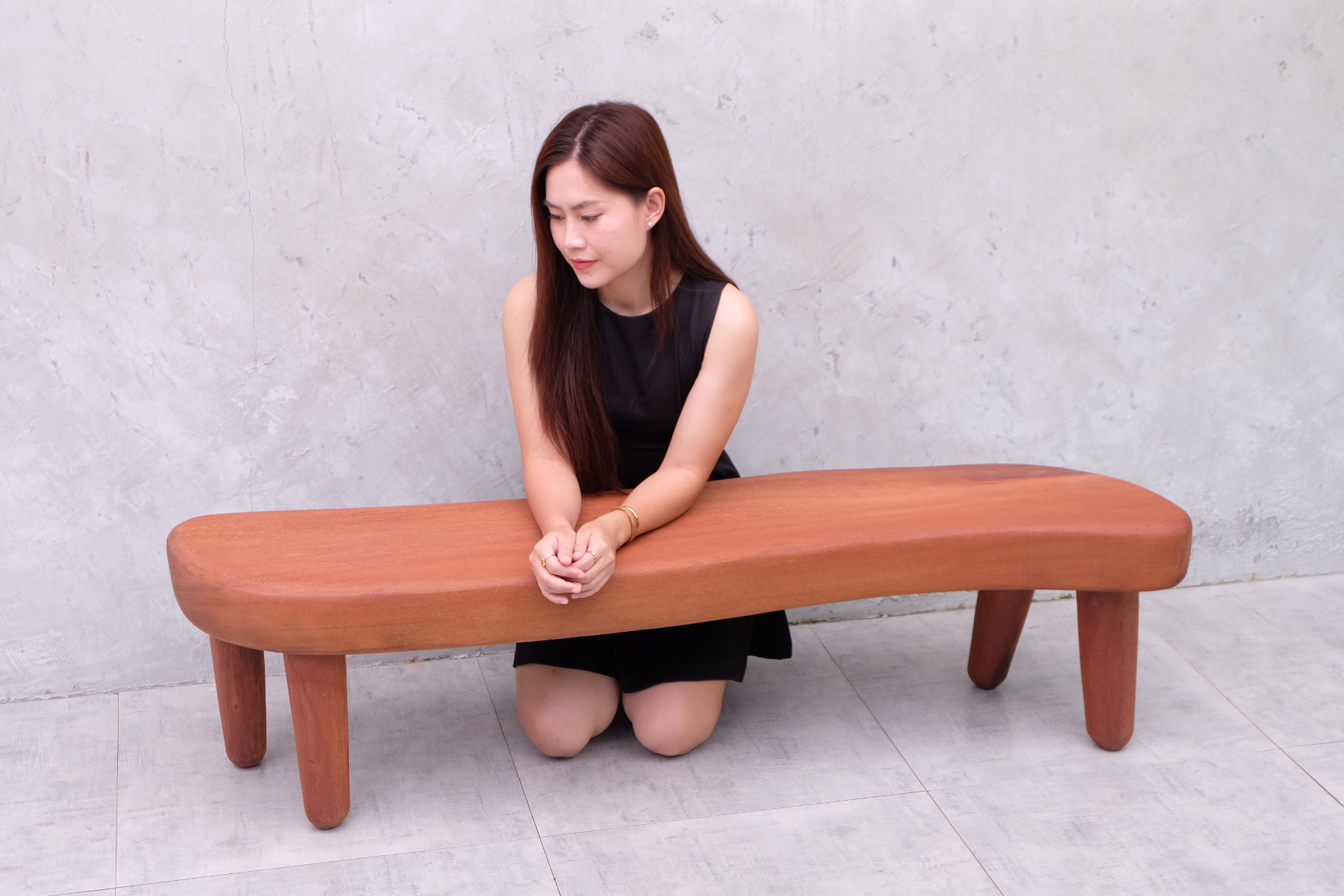 "ม้านั่งไม้หลุมพอ" ตัวนี้มีลวดลายที่โดดเด่นเฉพาะตัวซึ่งเกิดจากลายไม้ธรรมชาติของไม้หลุมพอ สีสันและเนื้อไม้ที่งดงามถูกขัดเกลาอย่างประณีตจนเผยความสวยงามที่เป็นเอกลักษณ์เฉพาะตัว ความแข็งแรงทนทานของไม้หลุมพอทำให้ม้านั่งตัวนี้สามารถใช้งานได้ยาวนานและคงทนต่อสภาพอากาศและการใช้งานในชีวิตประจำวัน