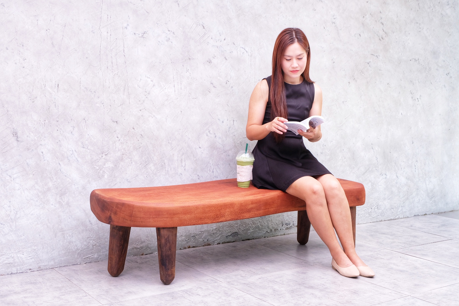 ม้านั่งไม้หลุมพอ ”อวดลวดลายไม้ด้วยโทนไม้สีเข้ม