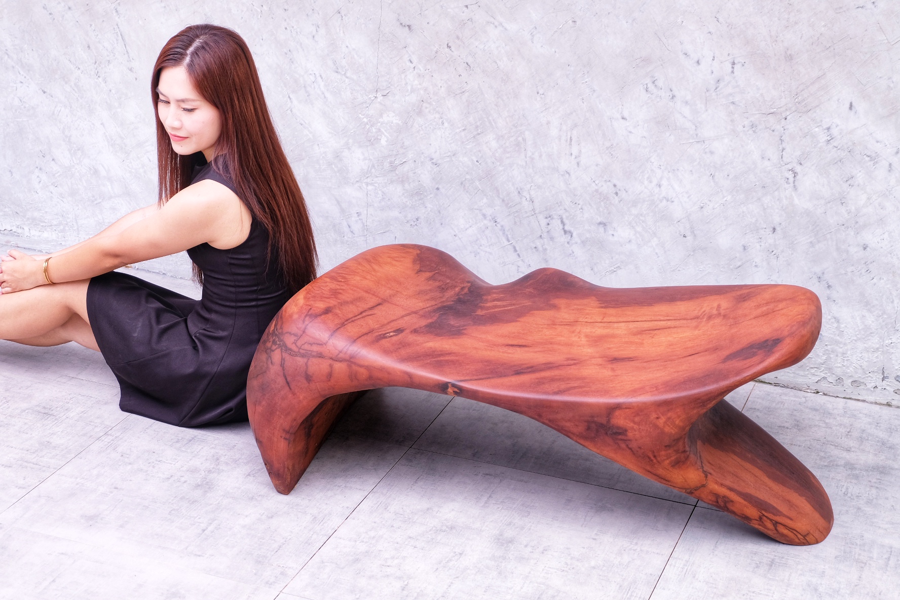 “ม้านั่งไม้หลุมพอ” อีกชิ้นงานของไม้หลุมพอที่งามสะพรั่งอวดโฉมดูอ่อนช้อย