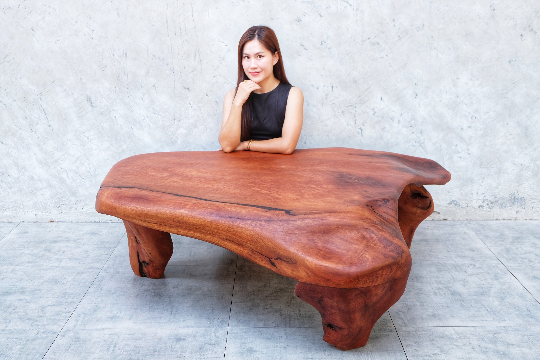 และ ลวดลายชัด เนื้อไม้โทนสีน้ำตาลอมแดงดูแนวดิบๆ รูปทรงแปลกตา