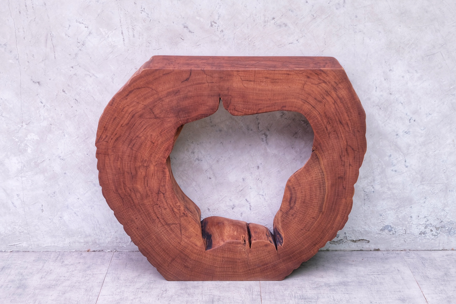 “ คอนโซลไม้หลุมพอ ” ออกแบบให้ตอบรับความเป็นธรรมชาติโชว์ให้เห็นร่องรอยของผิวไม้ และ ลวดลายชัด เนื้อไม้โทนสีน้ำตาลอมแดงดูแนวดิบๆ รูปทรงแปลกตา พร้อมตอบโจทย์การใช้งานและสะท้อนรสนิยมการตกแต่งบ้านอย่างมีสไตล์ เรียบง่ายแต่โดดเด่น ให้ความรู้สึกที่ทันสมัย ไม่ว่าจะใช้ในห้องนั่งเล่นหรือห้องรับแขก คอนโซลนี้จะเป็นจุดสนใจที่สะท้อนความชื่นชอบในศิลปะและความเป็นธรรมชาติ