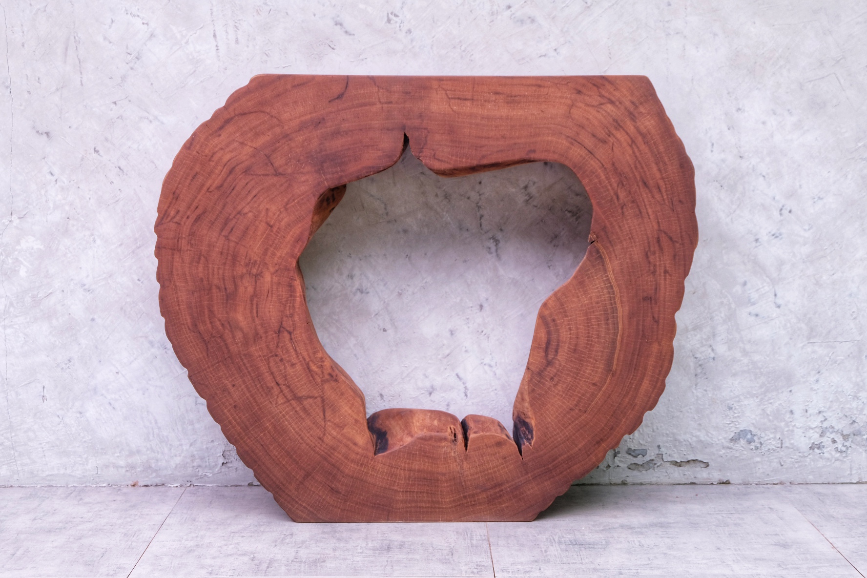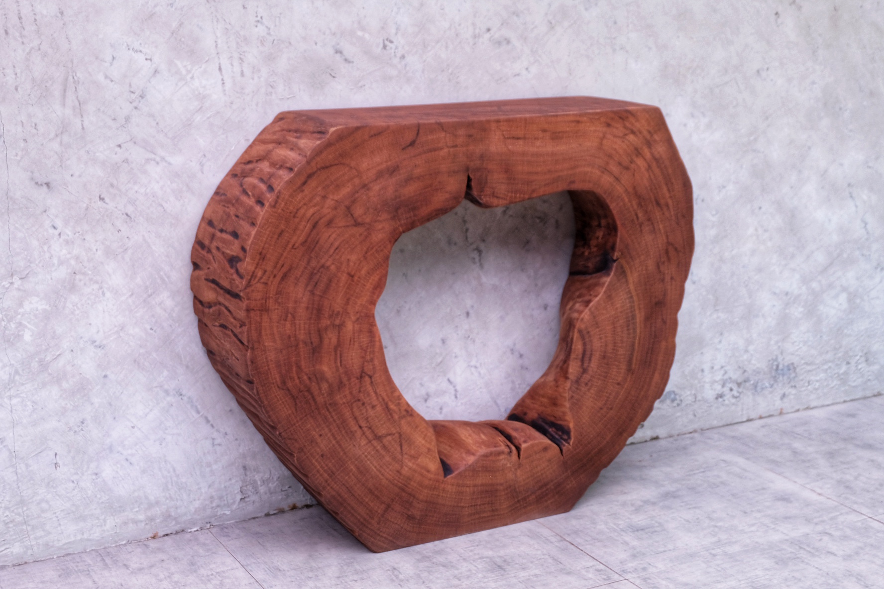 " คอนโซลไม้หลุมพอ " คอนโซลชิ้นนี้ถูกสร้างขึ้นด้วยความประณีตบรรจงจากไม้หลุมพอที่มีอายุหลายร้อยปี ไม้นี้ถือเป็นหนึ่งในไม้ที่แข็งแกร่งและทนทานที่สุดในโลก มีลวดลายและสีสันที่เป็นเอกลักษณ์ ซึ่งเป็นผลมาจากการเจริญเติบโตอย่างช้าๆ ในสภาพแวดล้อมที่เต็มไปด้วยความสมบูรณื นี่จึงเป็นสิ่งที่คุ้มค่าที่จะครอบครอง เพราะไม่เพียงแต่เป็นการแสดงถึงความงามของไม้ แต่ยังเป็นการเชื่อมโยงระหว่างปัจจุบันกับอดีต ผ่านงานฝีมือที่ถ่ายทอดความรักในธรรมชาติจากรุ่นสู่รุ่น