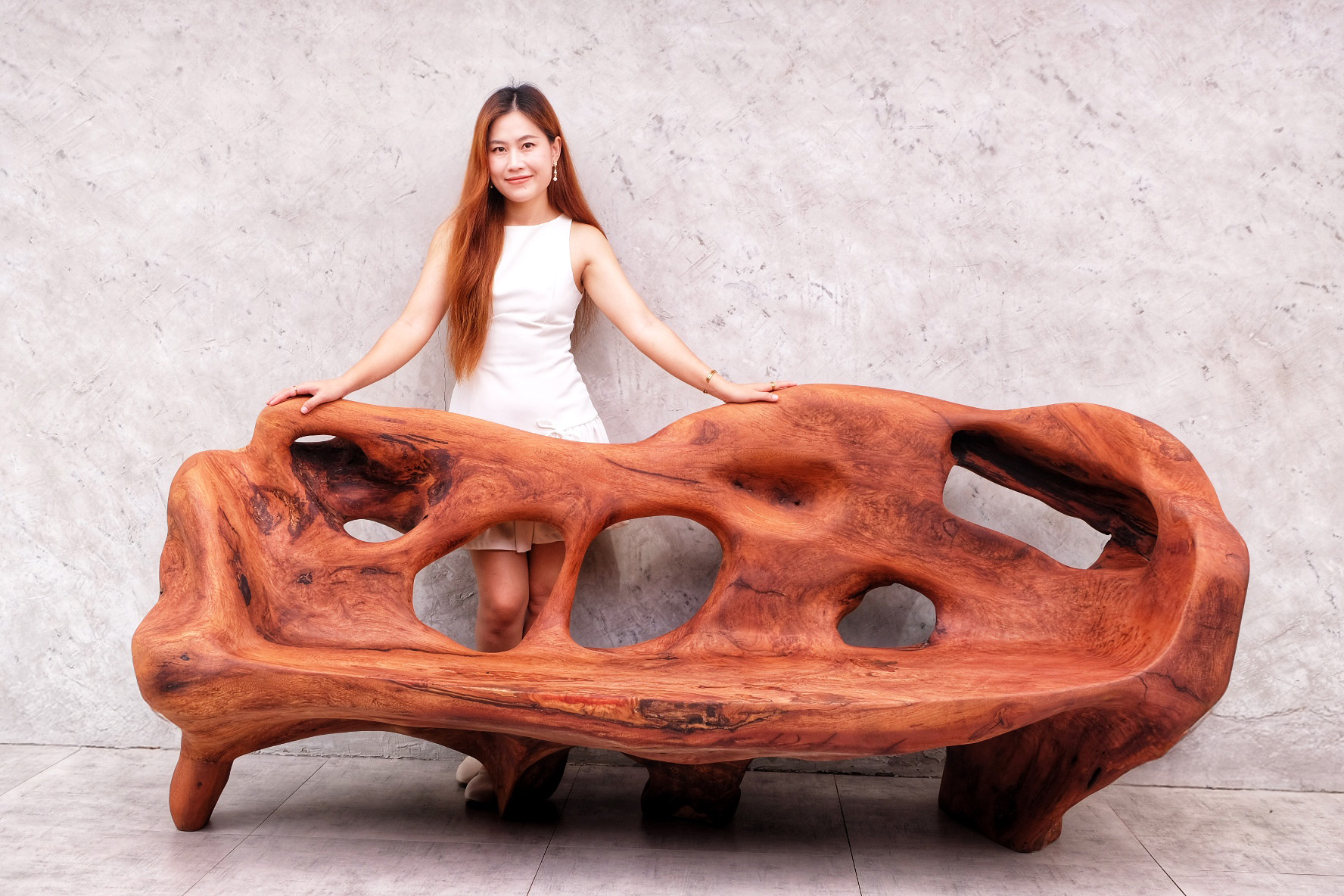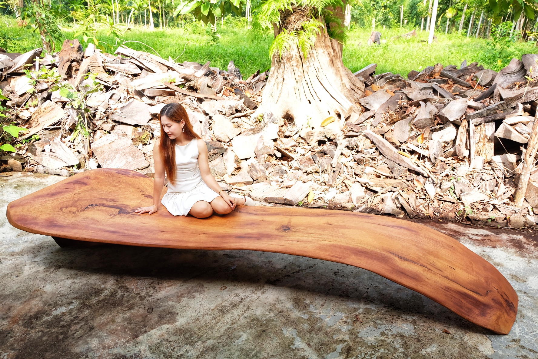 รูปทรงดูดิบๆ โชว์เนื้อ ผิว และลวดลายเด่นชัด โทนสีน้ำตาลสว่าง คลาสสิคและแปลกตา เหมาะกับ คนรักงานไม้ที่เป็นธรรมชาติ ซึ่งเป็นความงามที่ธรรมชาติสร้างสรรค์มาอย่างยาวนาน การนั่งบนม้านั่งนี้จึงไม่เพียงแค่การพักผ่อน แต่ยังเป็นการสัมผัสกับธรรมชาติและเชื่อมโยงกับอดีตที่ทรงคุณค่า